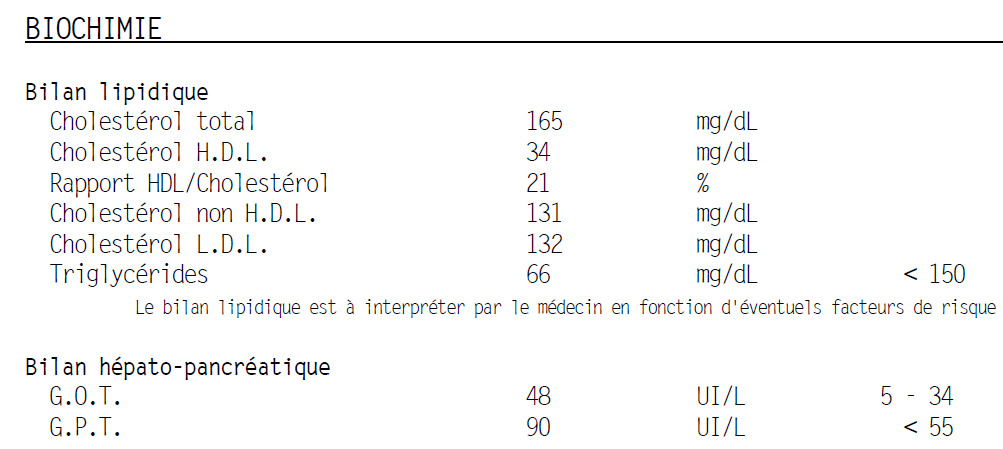 Prise de sang effectuée semaine dernière, une semaine après l'arrêt de la cure :