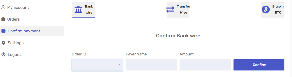 tu as payé par virement ou transferwise ?Quand je clique sur Bank wire sa ne fait rien, mais sur transfer wise sa m'affiche mon numéro de commande directement dans la case order id ces normal ?